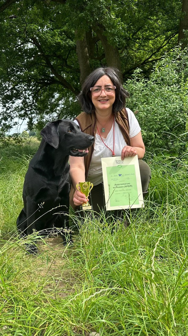 Der 18 Monate alte Labrador Rüde bewegt sich aktiv und interessiert durch die belebte und unbelebte Umwelt, mit großer Ausdauer zeigt er den gesamten Beutekomplex, freundlich und offen geht er auf Menschen zu.